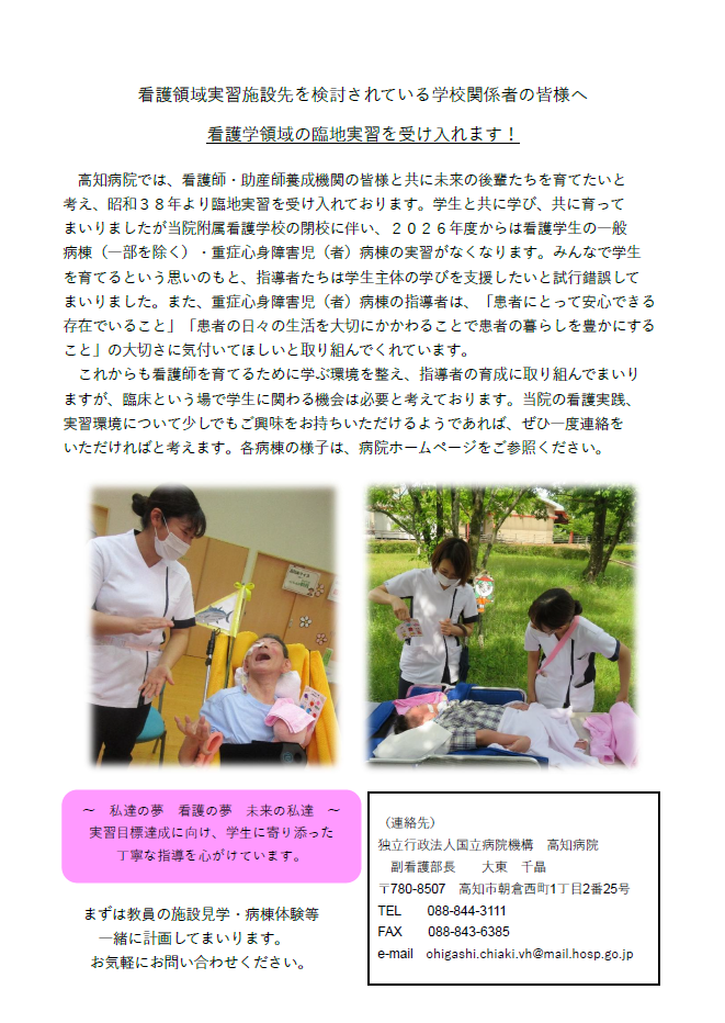 看護学実習受け入れのご案内
