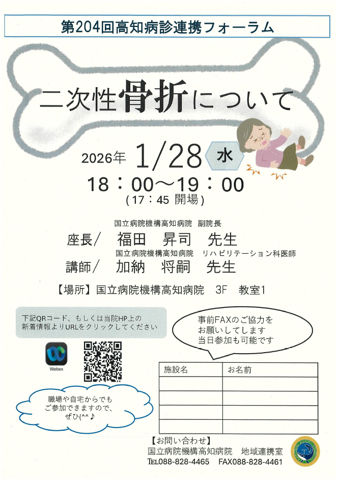 第204回高知病診連携フォーラム 「二次性骨折について」